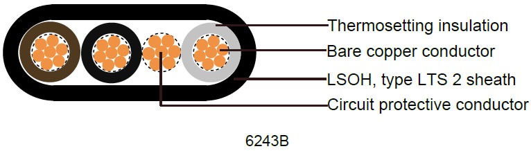 Professional 6241B/6242B/6243B LSOH flat wiring cables with circuit protective conductor. UKCA certified, fire-retardant, low smoke emission for residential and commercial installations. Technical specifications, applications, and safety features.